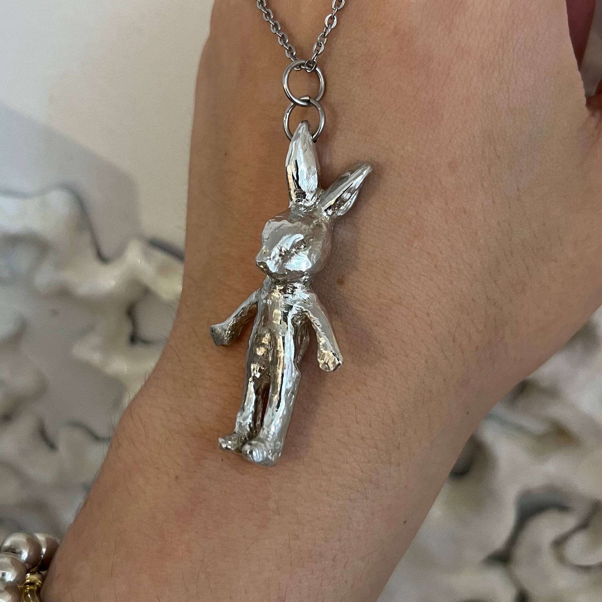 This necklace is handmade by me! It’s made from soft metals and a 16 inch stainless steel chain! Due to its handmade nature your necklace will look slightly different!