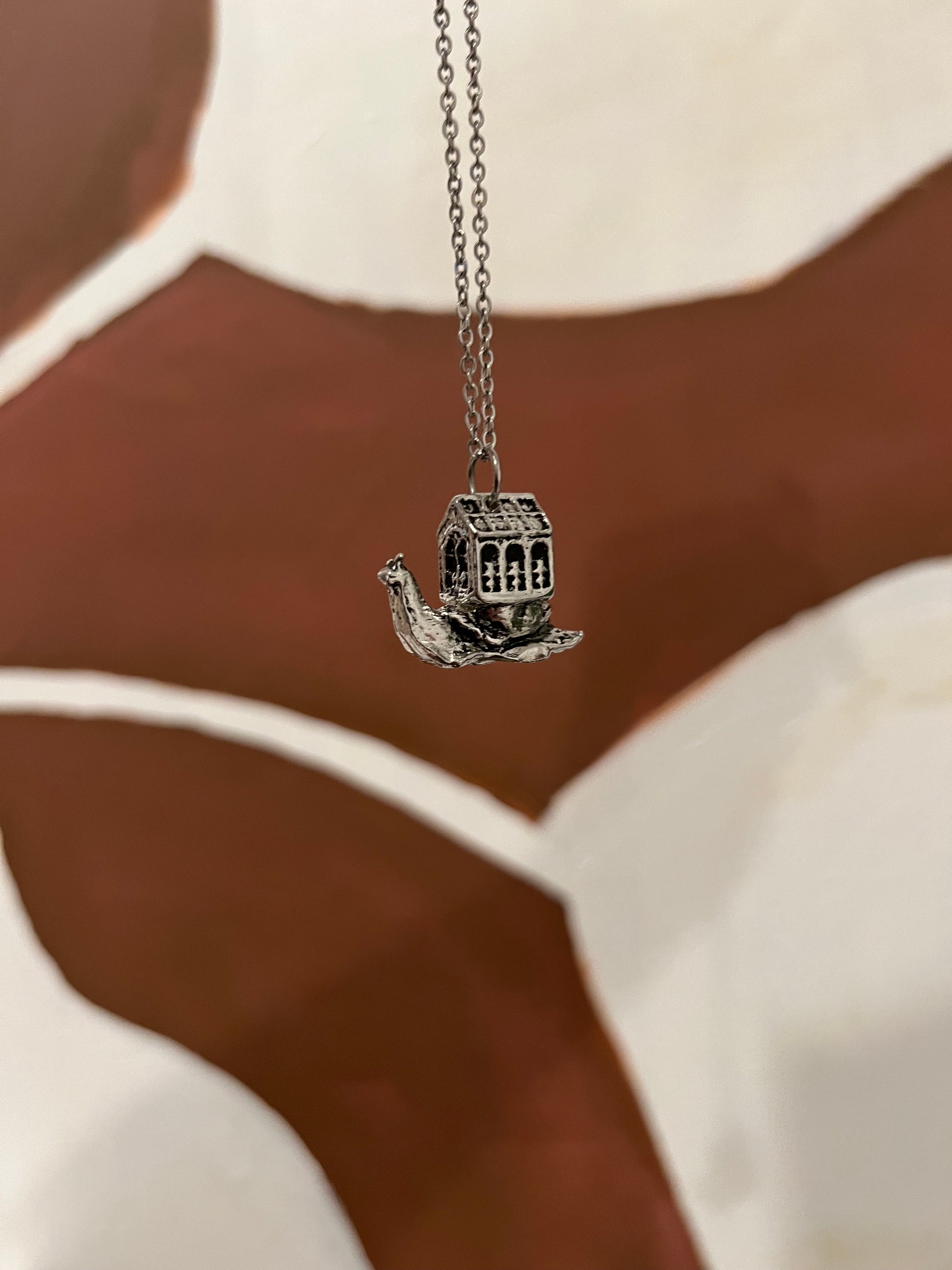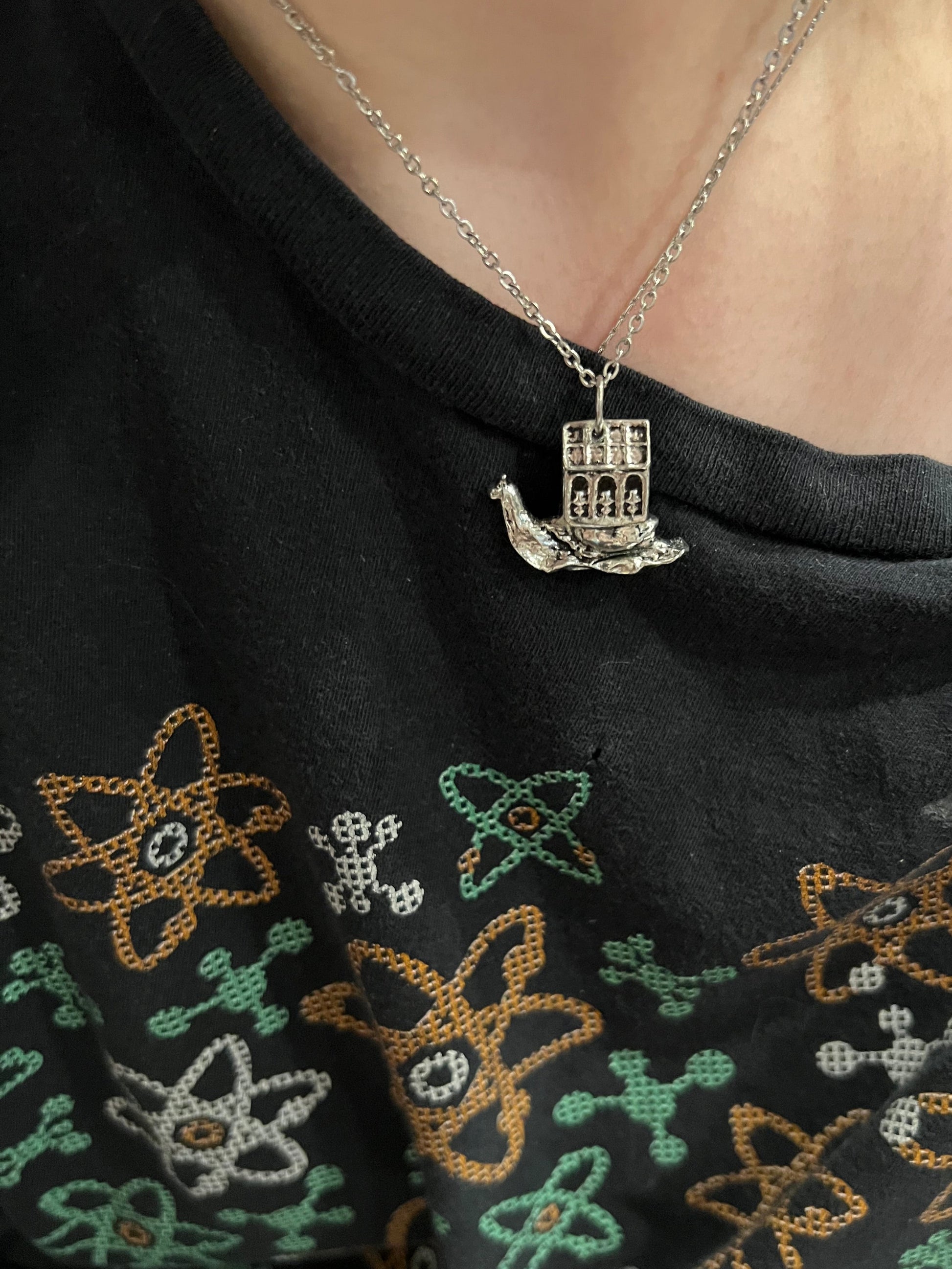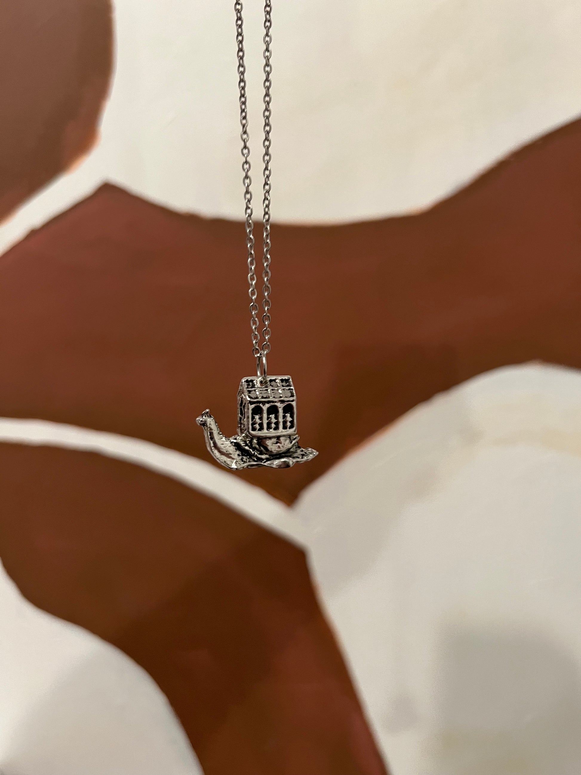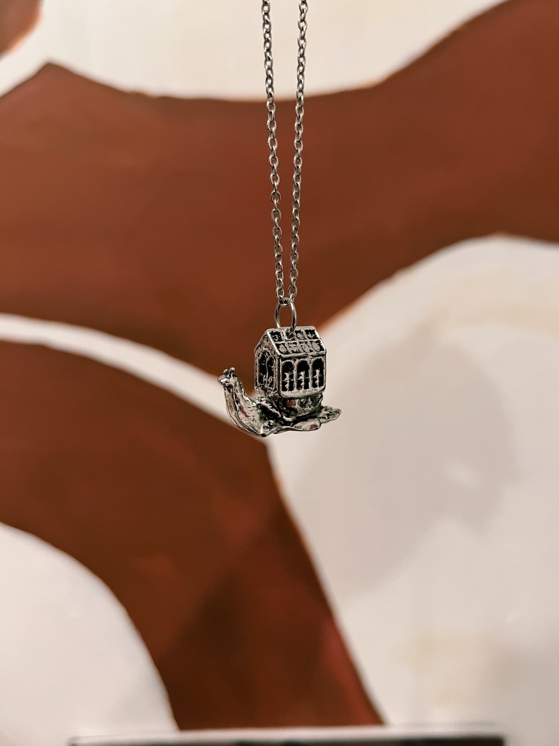 this necklace is handmade by me! It’s a cute little snail with a greenhouse on her back! It’s made from lead free pewter! Pewter last for decades without ever tarnishing!! The chain is a 16 inch stainless steel chain! Due to the handmade nature your necklace could have slight differences!
