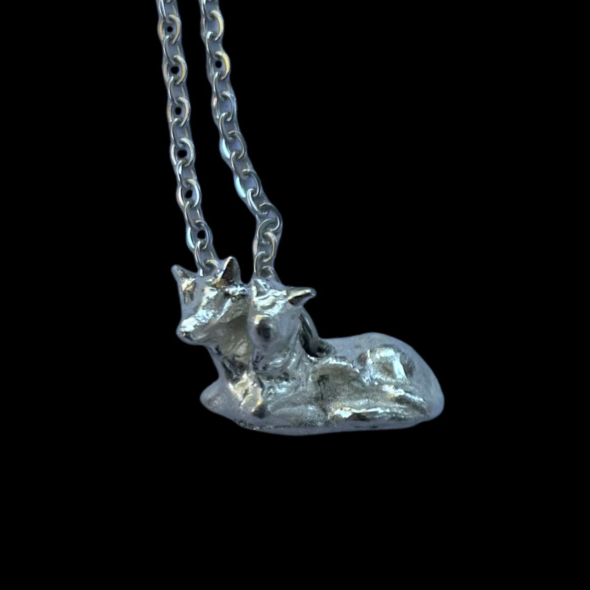 Handmade by me! Made from pewter! The necklace is 16 inches and made from stainless steel!